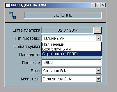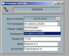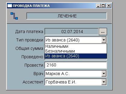 Визит можно провести сколь угодным количеством платежей отличающимся по дате и по типу (наличные, безналичные, из аванса, по страховке). Система будет контролировать и задолженность пациента, и баланс аванса и страховок.