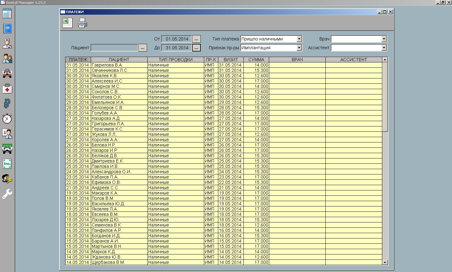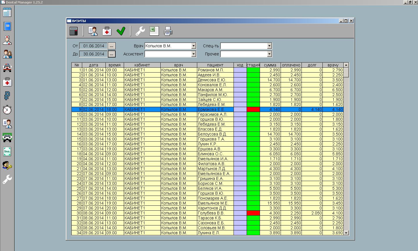 Таблица пациентов настраивается пользователем из 15 полей. В том числе: количесвто пациентов, которых привел пациент и сумму их платежей.