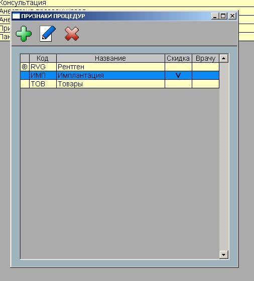 По умолчанию процедуры не имеют признака. Признак задается группе процедур, если нужно отслеживать платежи этой группы отдельно от остальных.