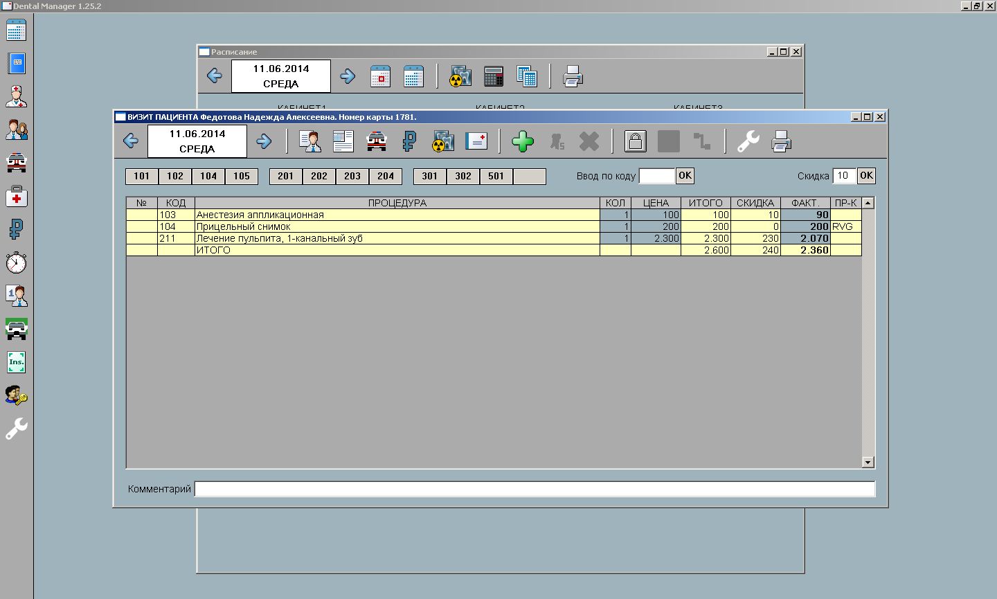 Добавить процедуры в визит можно несколькоми способами:
