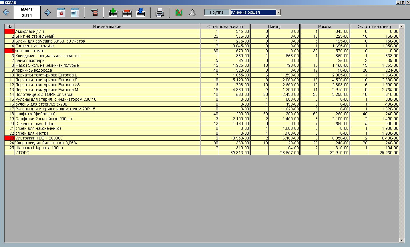 Номенклатура делится по группам. Управление складом осуществляется приходными и расходными накладными.